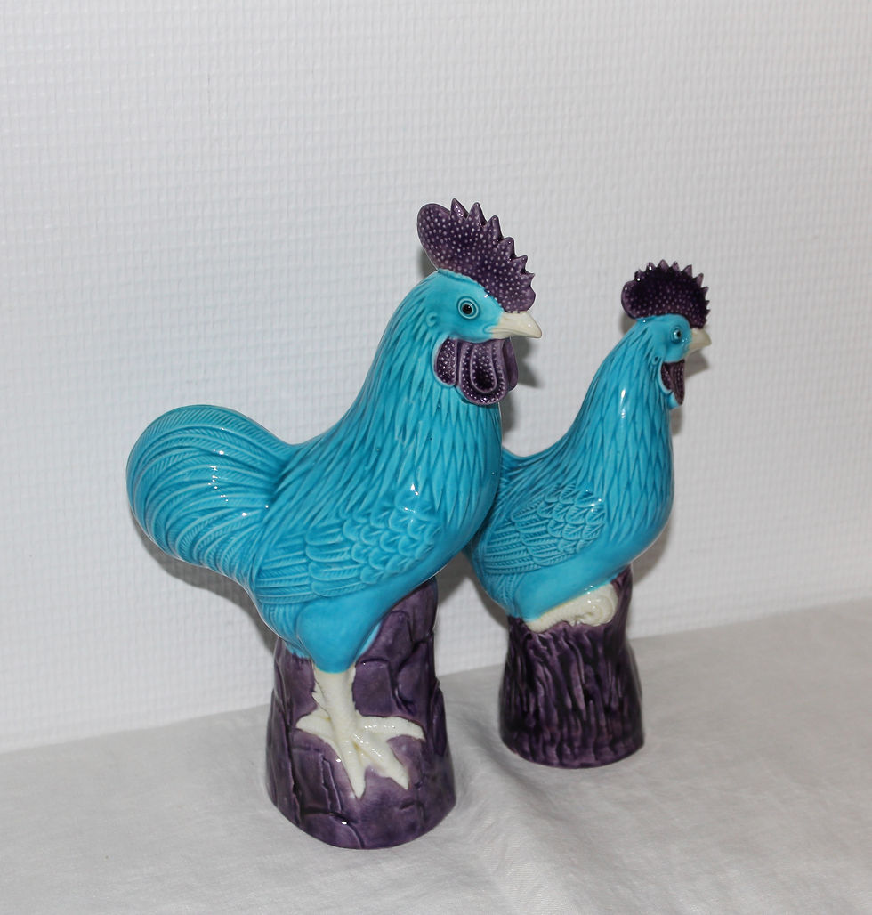 Paire de coqs en porcelaine - chine - 1950
